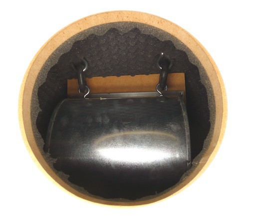 Une turbine torin est suspendue par de robustes caoutchoucs tendus ( voir photo ci dessous ) dans une caisse en bois accoustique (et non en bois aggloméré !) dont la surface intérieure est recouverte d'une couche de mousse insonorisante (et non du polystyrène ! ).