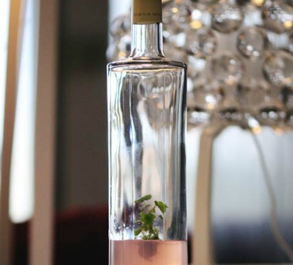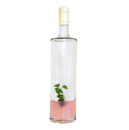 Un cep de vigne abrite sa croissance lové dans une bouteille de vin.