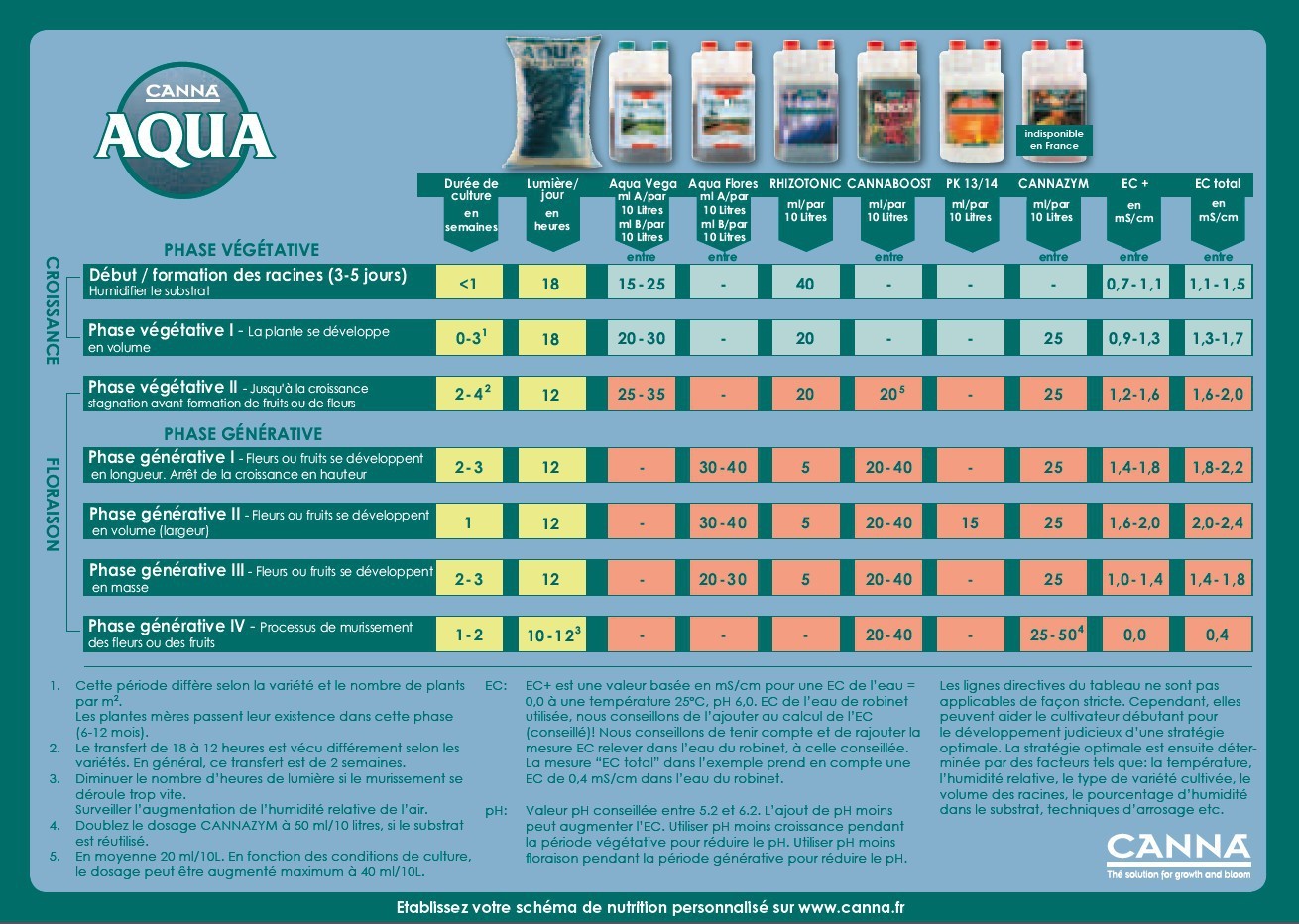 Schéma de culture Canna Aqua