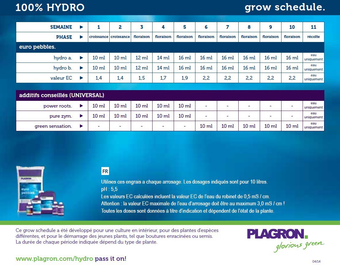 Schéma culture 100% Hydro PLAGRON