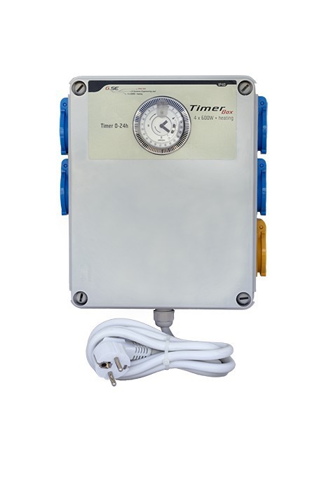 Le relais minuteur GSE Timer Box 4 x 600w + Chauffage, gère jusqu'à 4 lampes de 600w en toute sécurité et également une prise chauffage !