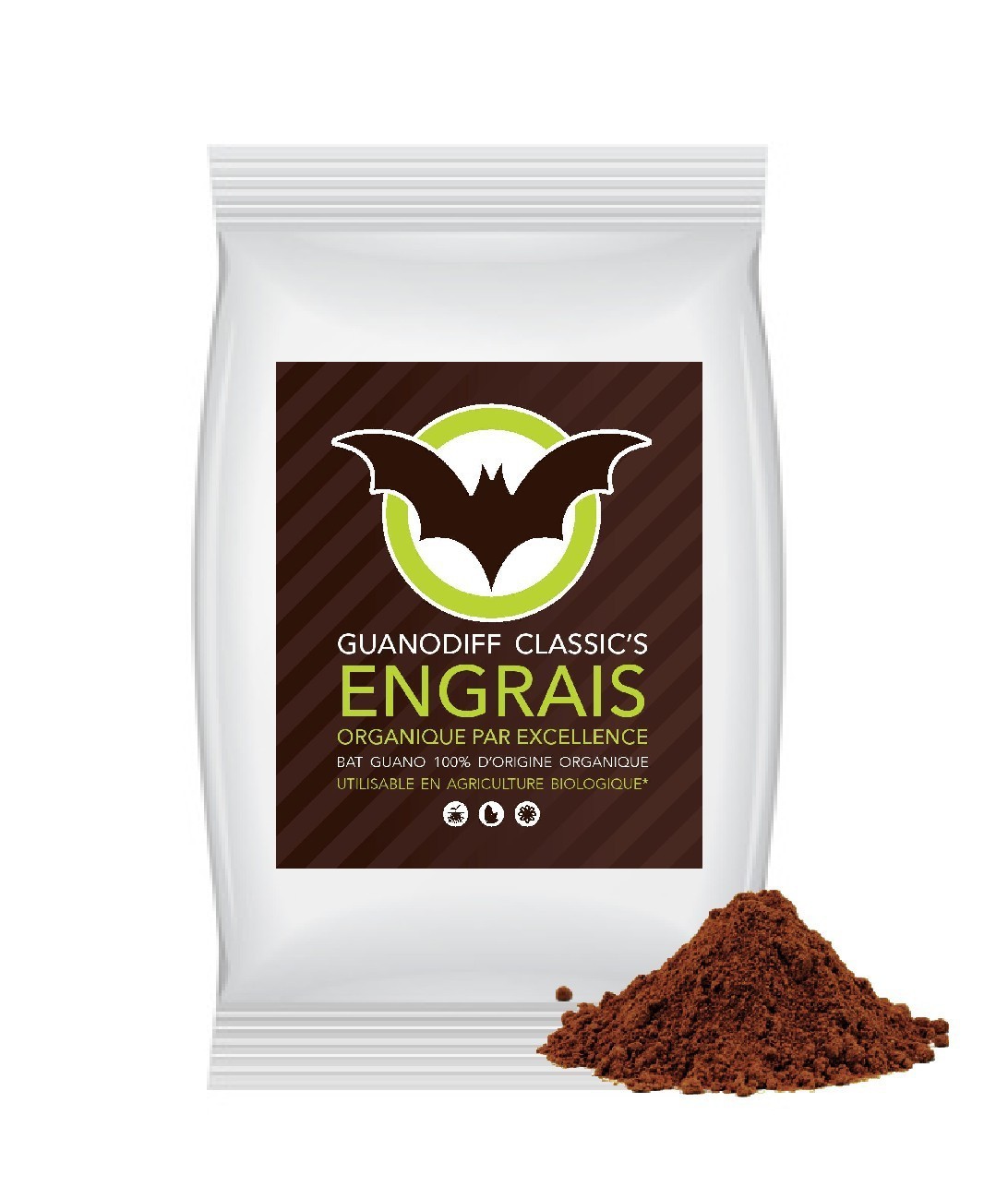 GuanoDiff Classic's est composé à 100% de guano de chauve-souris, naturel et utilisable en agriculture biologique.