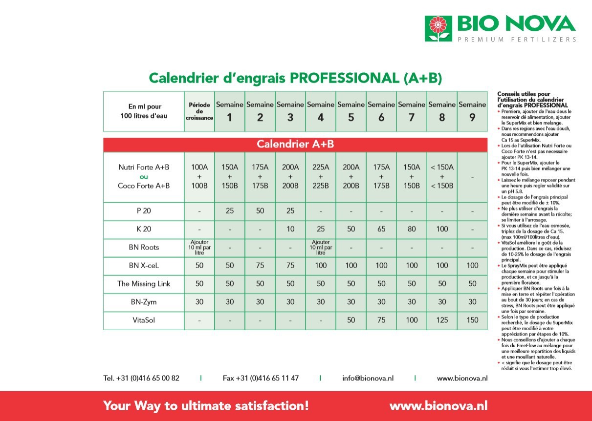 Schéma de culture PROFESSIONAL AB de BioNova