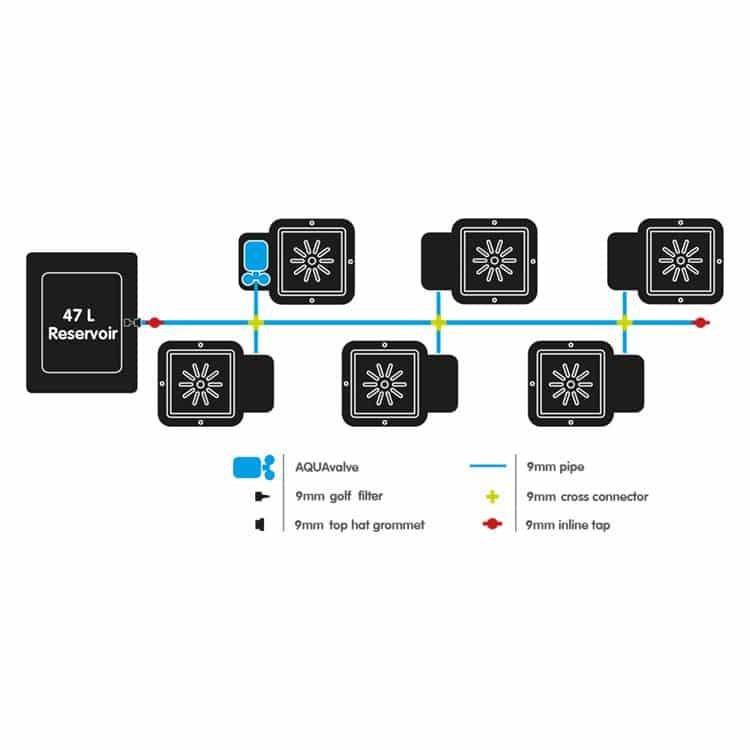Le AQUAvalve est fourni avec tous les systèmes d'arrosage AutoPot .Une fois connecté à l'alimentation en eau, la AQUAvalve va contrôler le débit d'eau pour les plantes, par la pression simple de la gravité à partir d'un réservoir de nutrition, pas de pompes, d'électricité ou de minuteries sont nécessaires.