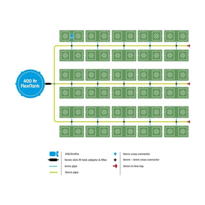 Quelle que soit votre taille de culture, Autopot s'adresse aux jardiniers et aux producteurs de toutes les tailles garantissant d'excellents résultats. Le système est facilement extensible, 1Pot ou 1000 pots peuvent être reliés à un seul réservoir. Les pots et plateaux peut être facilement déplacé à volonté, si les plantes poussent trop vite, elles peuvent être plus espacés avec facilité. Une fois mis en place et le réservoir rempli d'eau ce système extrêmement polyvalent va complètement prendre soin de tous vos besoins de plantes.