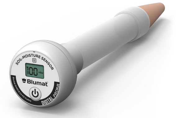 Puisqu’il est difficile d’estimer à l’œil nu le degré d’humidité de la terre dans de grands pots, Blumat Digital indique la force d’aspiration dont ont besoin les racines pour absorber l’eau.