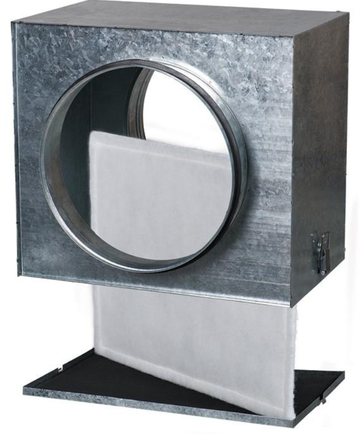 Le boîtier est en acier galvanisé. La boîte de filtrage a des flanges de raccordement avec des joints en caoutchouc pour une connexion hermétique aux conduits d'air.