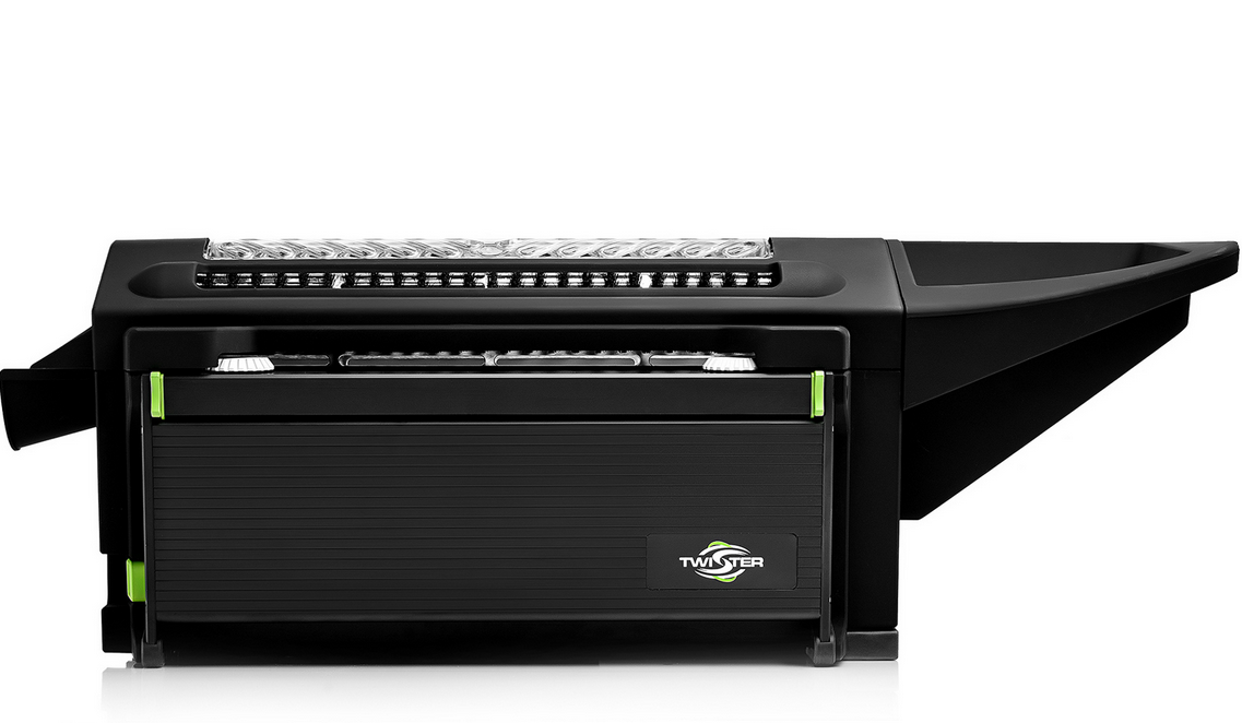 La conception intelligente de la table du T6 permet une coupe en douceur jusqu'à 2.2kg/h sur produit sec et 10kg/h sur produit humide à l'aide de la technologie Twister SoftTumble ™. la Twister T6 est capable de tailler une large gamme de niveaux d'humidité des fleurs, de 8 % jusqu'à une fleur entièrement hydratée.