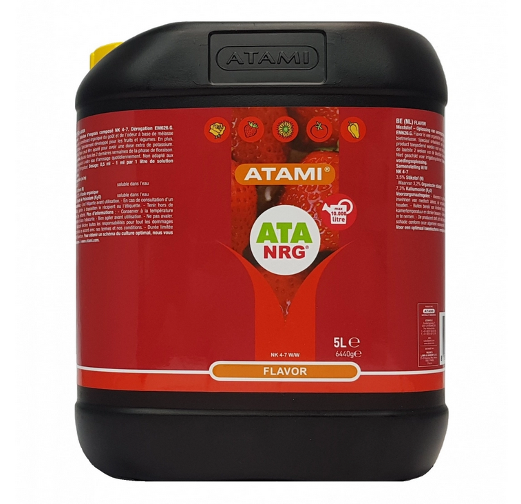 Le potassium favorise une circulation optimale de la sève dans la plante, celle-ci développera alors une tige et des branches robustes, aboutissant finalement à une meilleure récolte. L’ajout de l’additif ATA NRG Flavor à votre nutrition végétale habituelle aura aussi un effet positif sur la saveur et sur l’odeur de vos produits finaux.