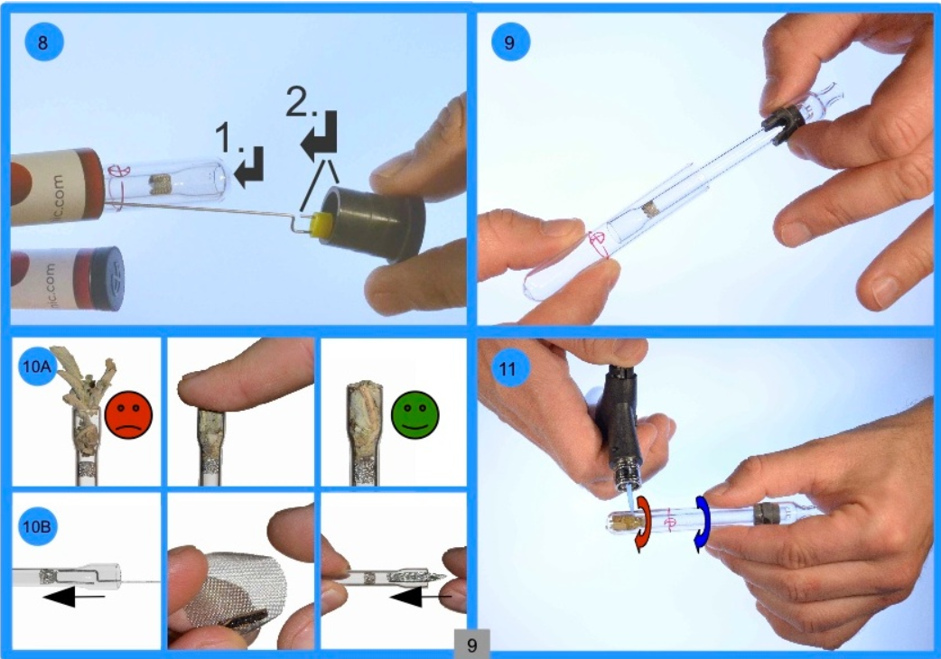 IMPORTANT : Prenez garde à le faire chauffer seulement entre la ligne rouge du logotype et l’extrémité fermée du tube extérieur. Ne le faites surtout pas chauffer sur l’extrémité même du tube (car cela aurait pour effet de brûler la plante, ni trop près de la ligne rouge (car vous risqueriez de vous brûler les doigts et d’entraver le fonctionnement du vaporisateur. Faites tourner la pipe pendant que vous la faites chauffer afin de repartir la chaleur de façon homogène sur tous les côtés.