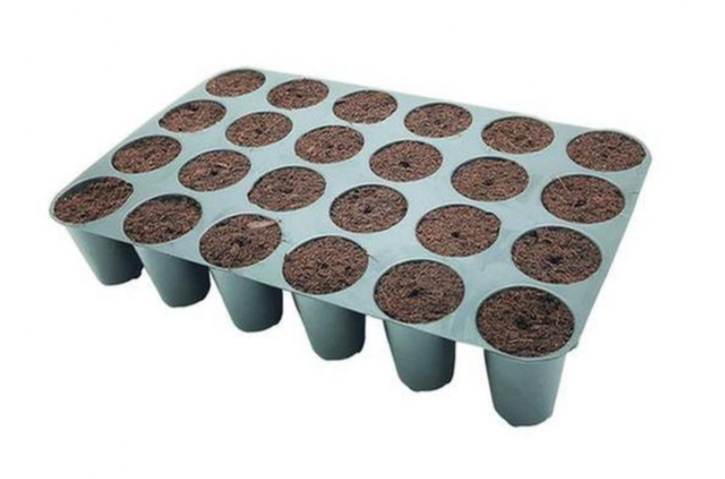 Bac à graines de 24 blocs de tourbe de coco, destiné à la germination de vos graines. Prêt à l'emploi, il suffit d'ajouter les graines dans le trou désigné.