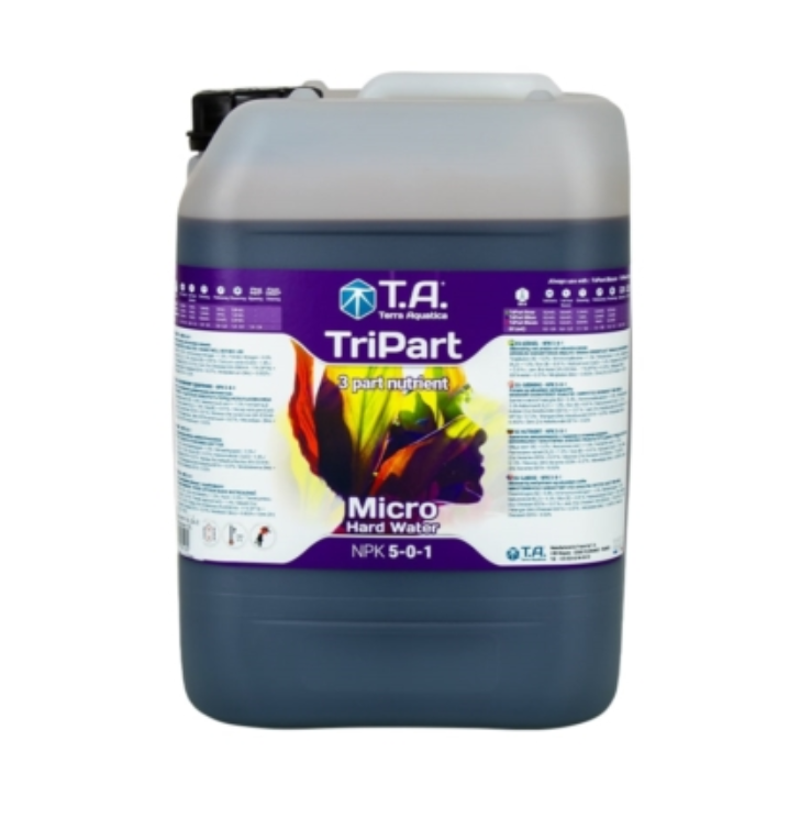 TripartMicro : disponible en formule « eau douce » et « eau dure », il est le fondement de notre système d’engrais. Il contient des micro- et sub-éléments ainsi que des macro-éléments complémentaires. Utiliser TriPart® Micro comme indiqué, sur toute la durée de la croissance et de la floraison.