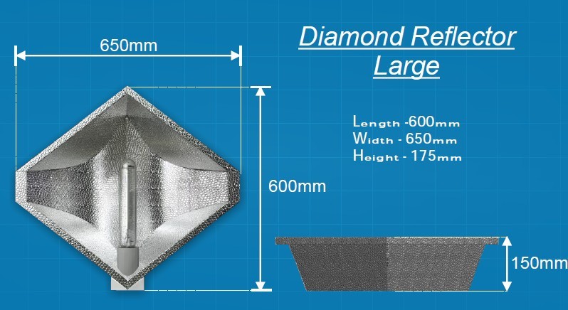 Il permet l’utilisation des ampoules MH et des ampoules HPS de 600 à 1000 watts en culture intérieure. Les tests ont révélés que le réflecteur Diamond permet de gagner jusqu’à 50% de lumière par rapport à un réflecteur de type classique.