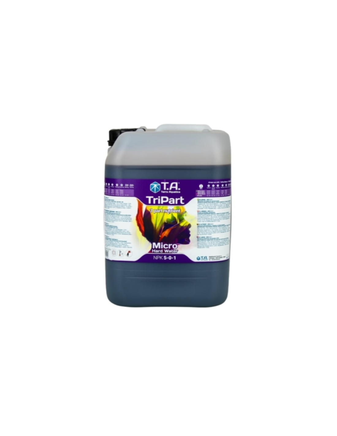 TripartMicro : disponible en formule « eau douce » et « eau dure », il est le fondement de notre système d’engrais. Il contient des micro- et sub-éléments ainsi que des macro-éléments complémentaires. Utiliser TriPart® Micro comme indiqué, sur toute la durée de la croissance et de la floraison.